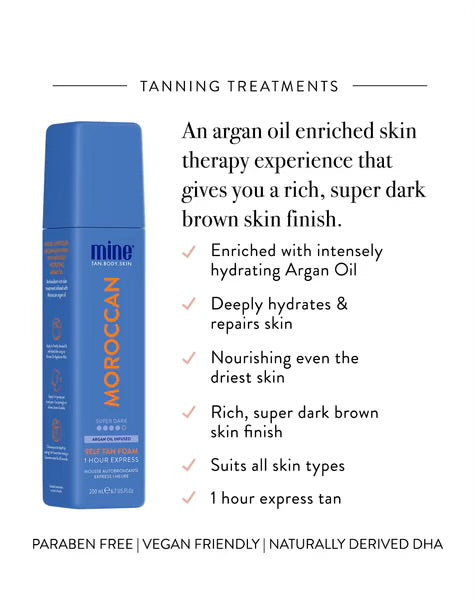 Enriched with argan oil to transform and nourish even the driest skin, Moroccan is an intensely hydrating bronzing treatment that delivers a super dark brown skin finish.